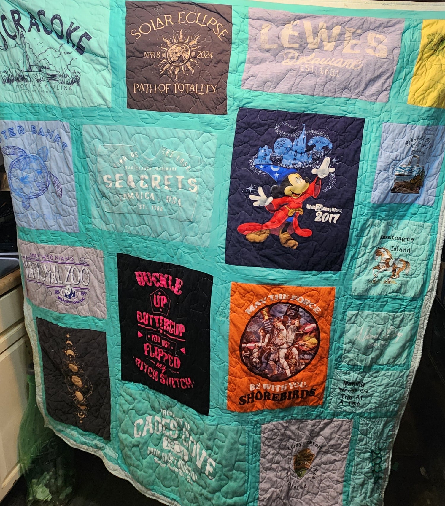 Outgrown your souvenir shirts or hoodies? Send them my way, and I can transform them into a quilt that displays all your adventures in one spot.