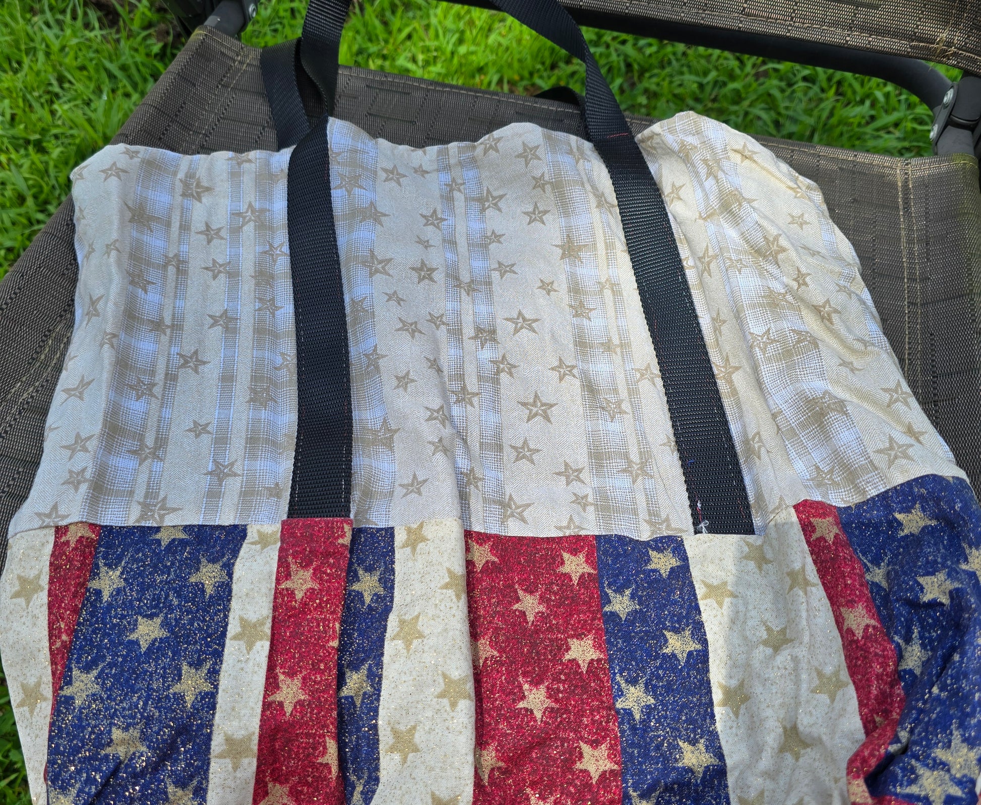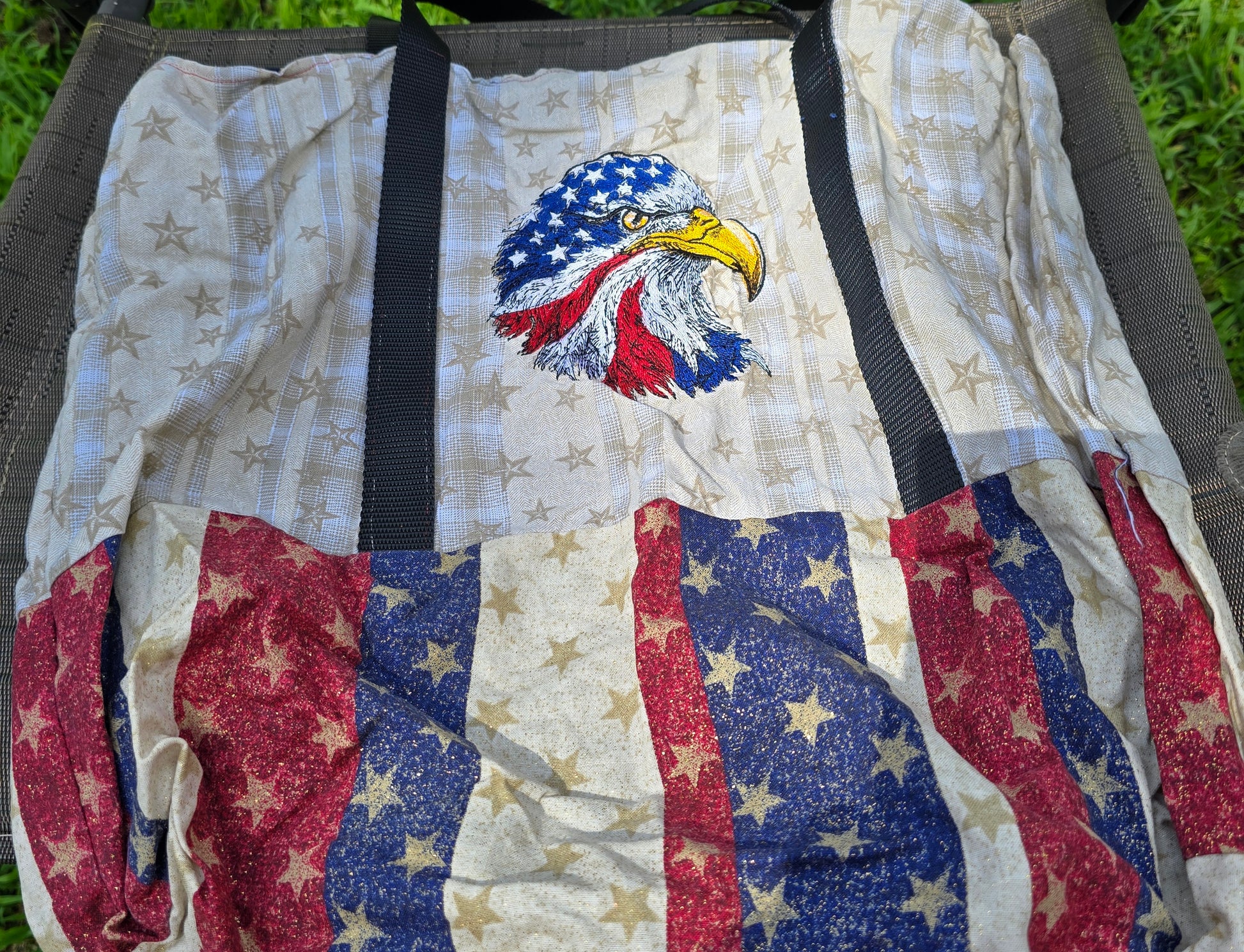 Eagle Tote The bag measures 18"W x 12"H and does not include pockets or closures.