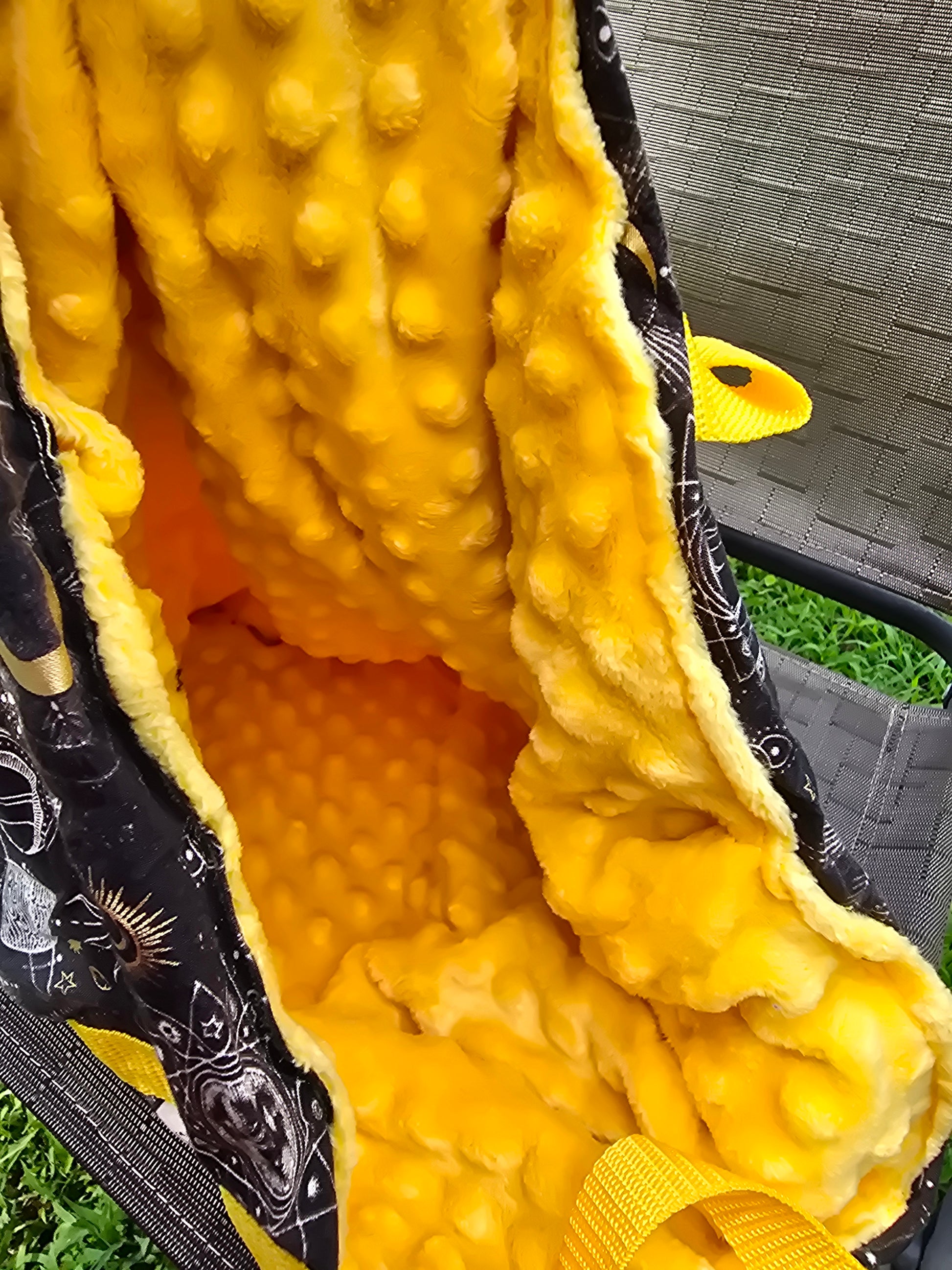 Cat moon Bag The bag measures 18"W x 12"H and does not include pockets or closures.