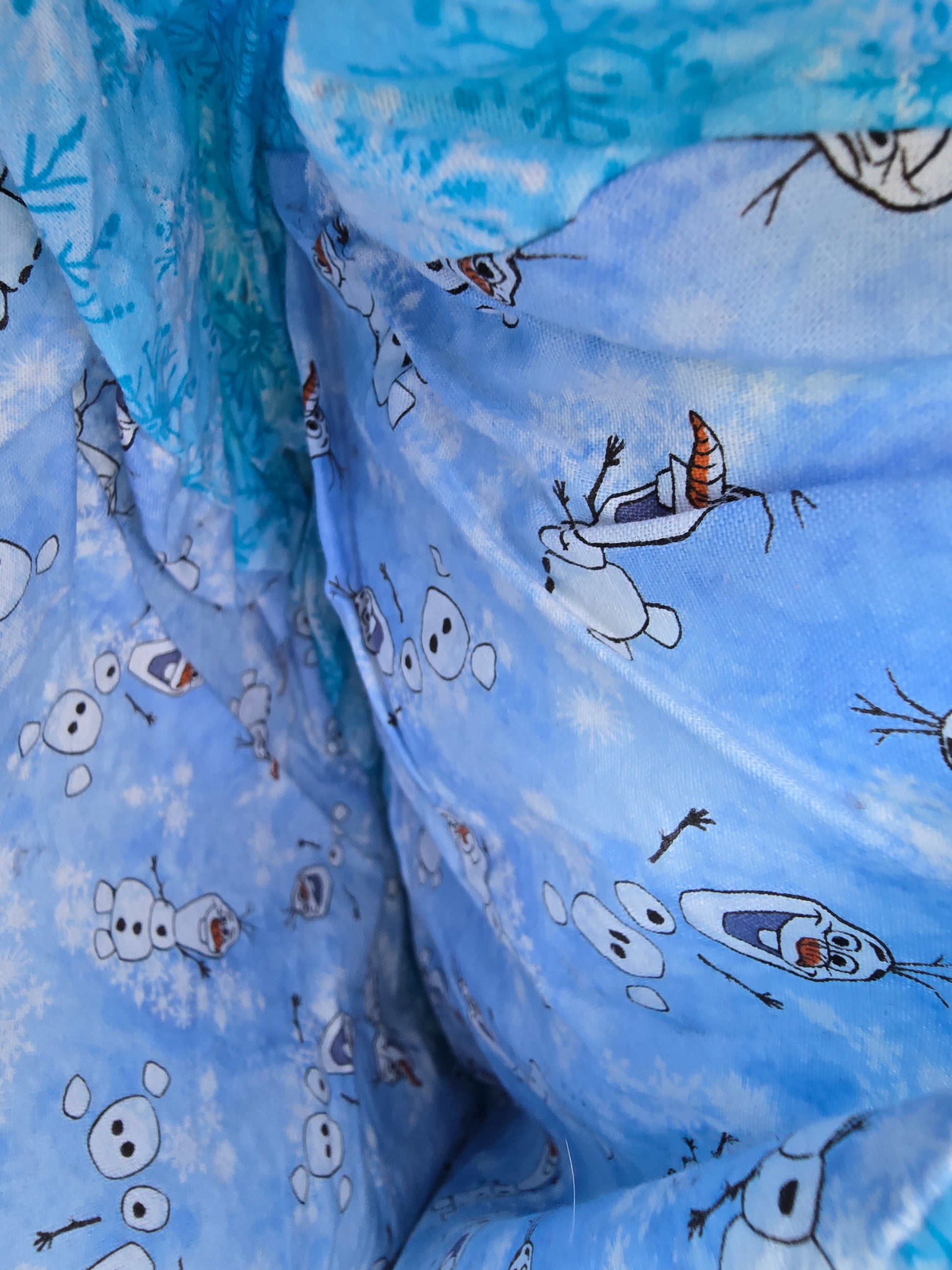 The Olaf Wants a Warm Hug bag features a foam lining to maintain its shape, a zippered top for secure closure, and a handy side pocket. It measures approximately 14x9x5.
