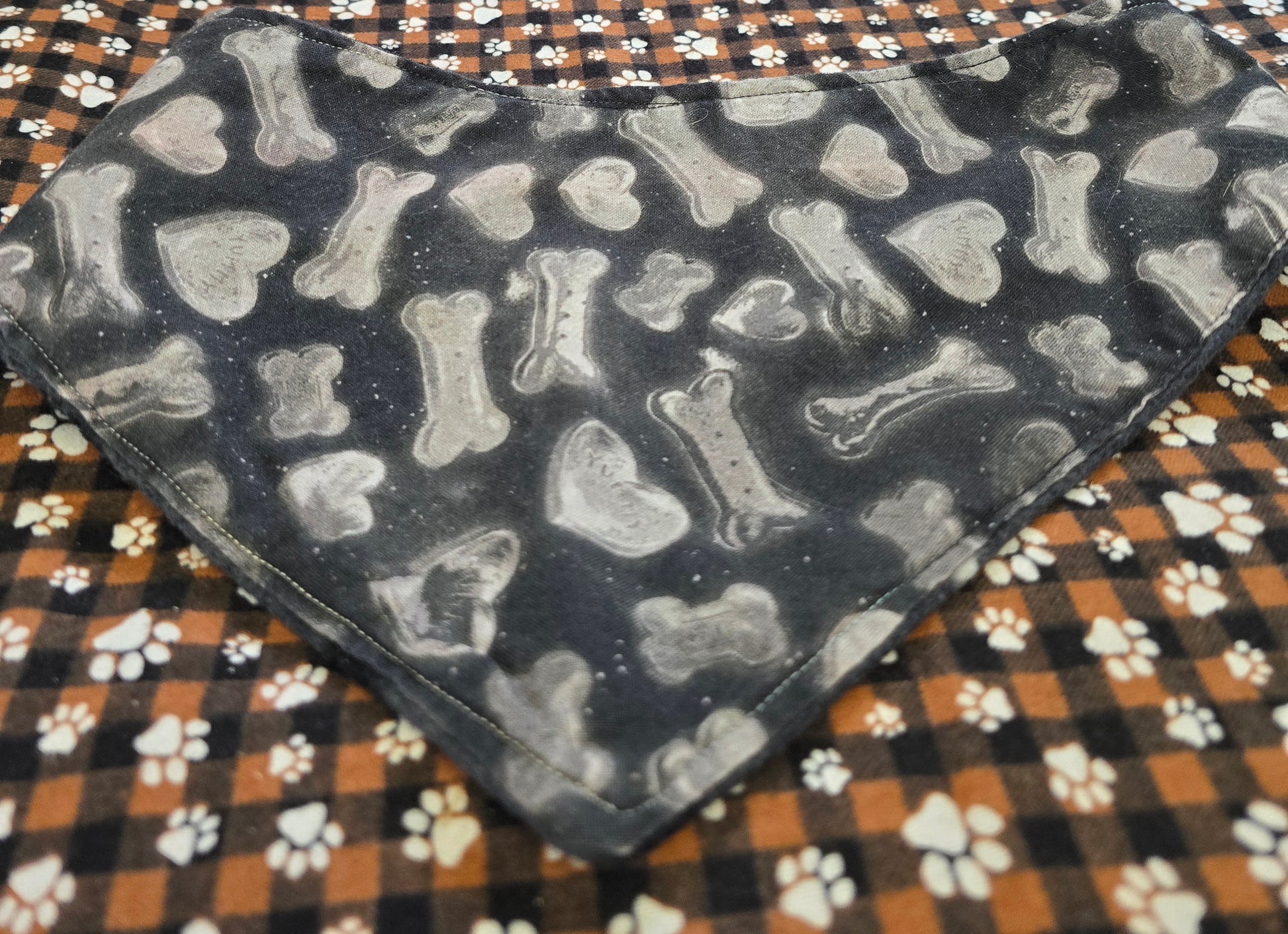 The Paw Print bandana is reversible and made with a plastic snap button that won't rust.
