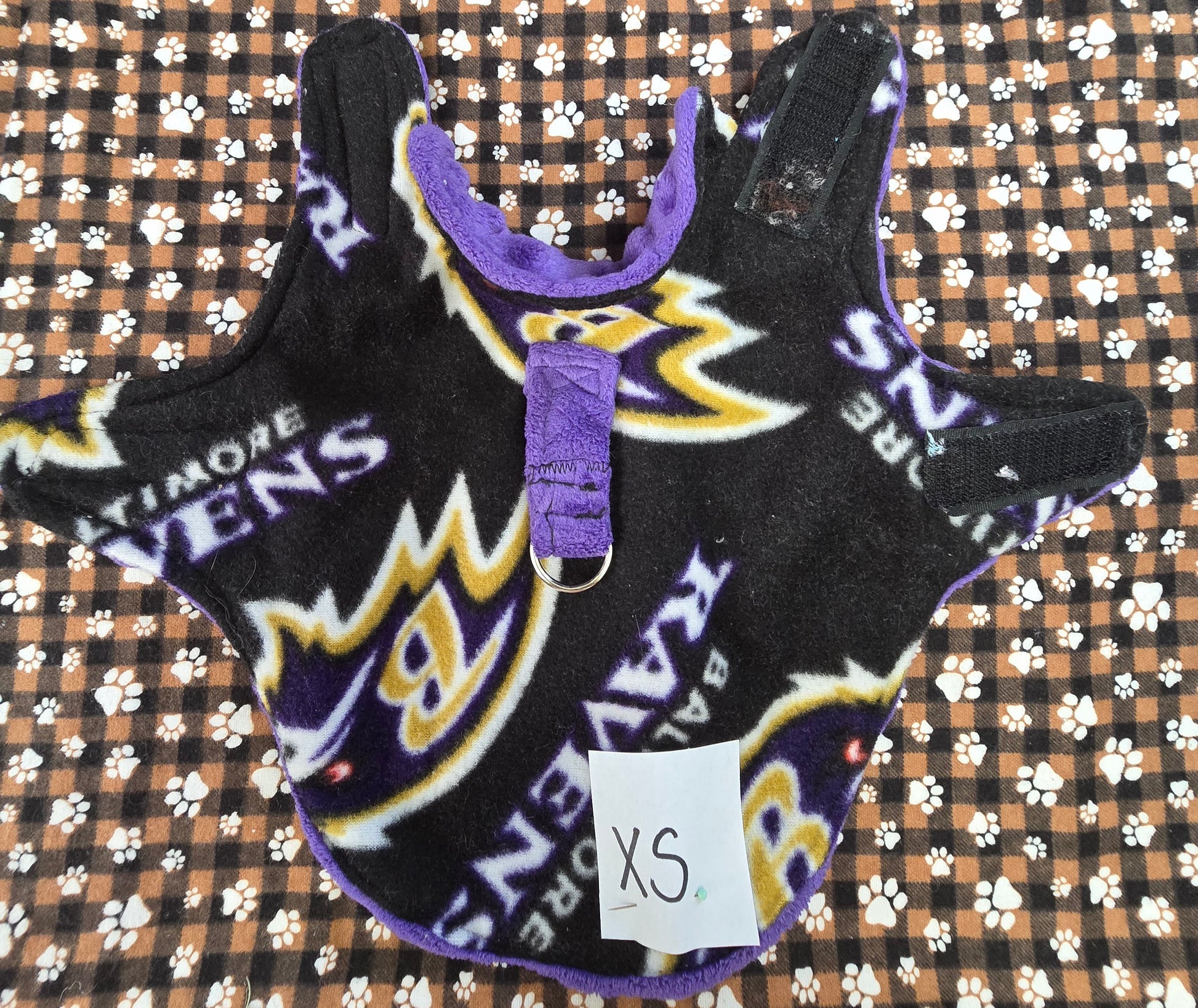 Extra small pet jacket. Let your furry friend shine on game day with their Baltimore Ravens jacket. Made with soft fabric to keep your pet cozy while proudly displaying your team spirit.