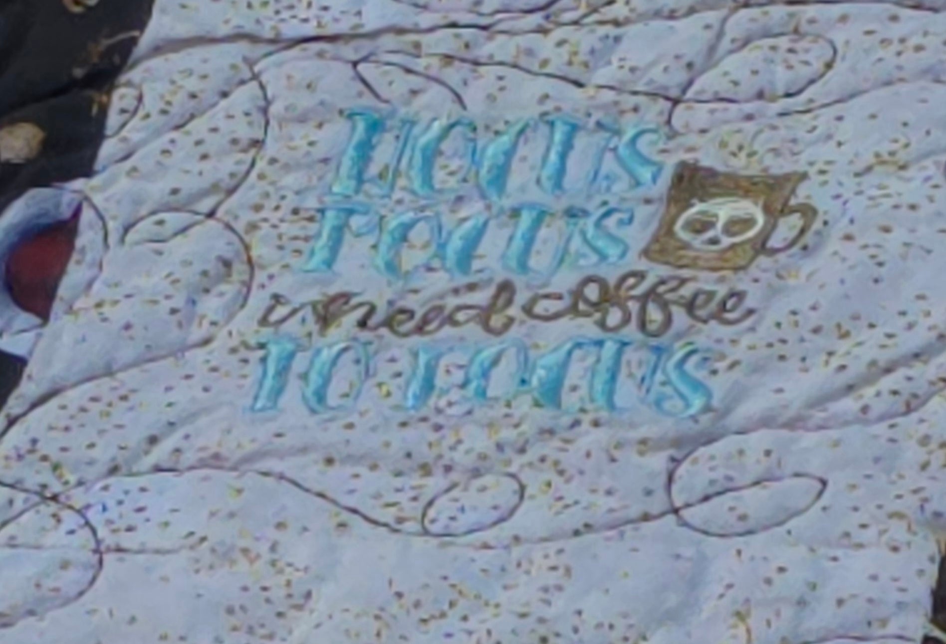 Calling all coffee lovers! This quilt, measuring 50x60, is the perfect throw size. Featuring embroidered images and a cozy fleece backing, it's ideal for snuggling by the fireplace with your favorite cup of coffee.